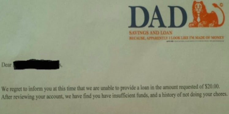 You, honestly, can't call yourself a dad until you reject your kid's request to borrow a $20 bill.