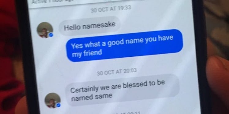 Meeting someone with the same exact name as you is always a little bit awkward, whether you meet in person or on the internet.