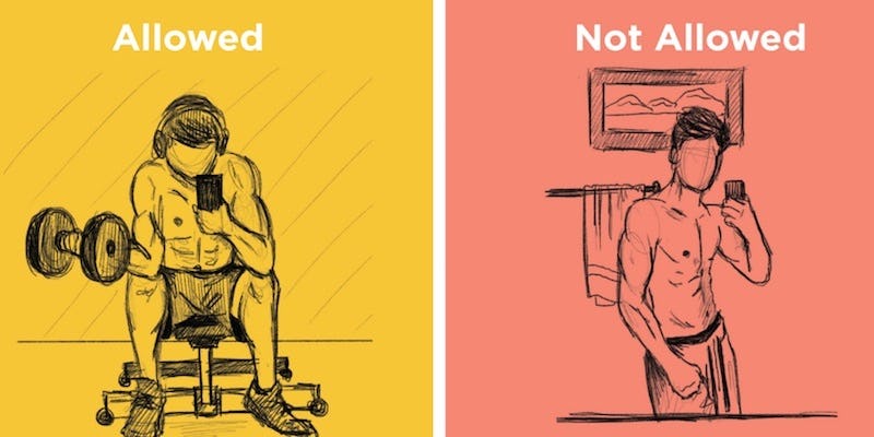 On top of banning mirror selfies, the app said "no" to a few more things, which include photos with unsupervised children, provocative underwear flaunting, and bikini pics that aren't taken outside.