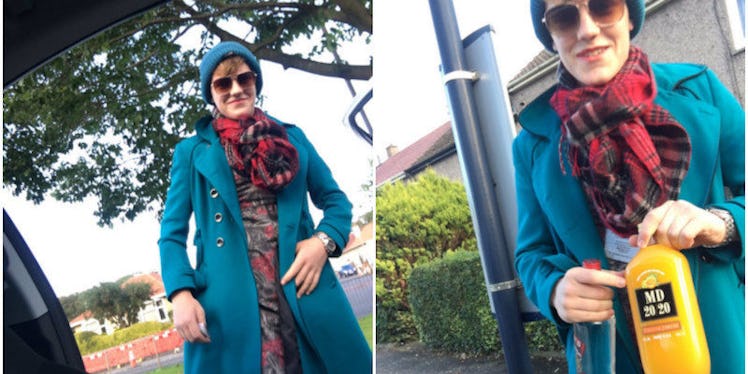In the UK, this actually works. Some guy took a picture of his friend delivering booze undercover as the woman who gave birth to him. I'm sure she's very proud.