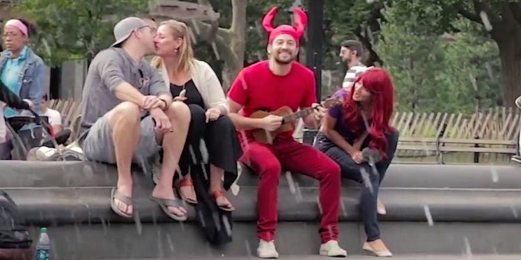 The Little Mermen, a Disney-themed cover band based out of New York, decided to artificially induce some romance in Washington Square Park by giving impromptu performances of “Kiss the Girl” (from "The Little Mermaid") next to various couples just trying to anonymously enjoy their day without being part of a viral video.