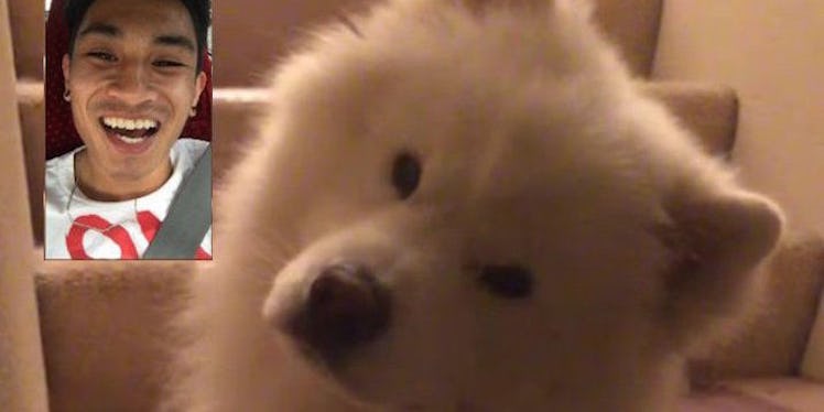 At first, Fontanilla's dog doesn't really understand the whole concept of FaceTiming and fails to even notice the fact that his family is staring at him on the screen.