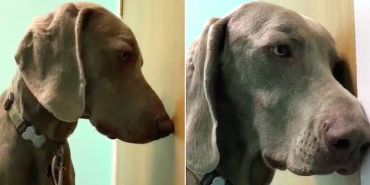 At first, Gunnar is swaying back and forth and leaning his snout against the wall in his high state of mind.
