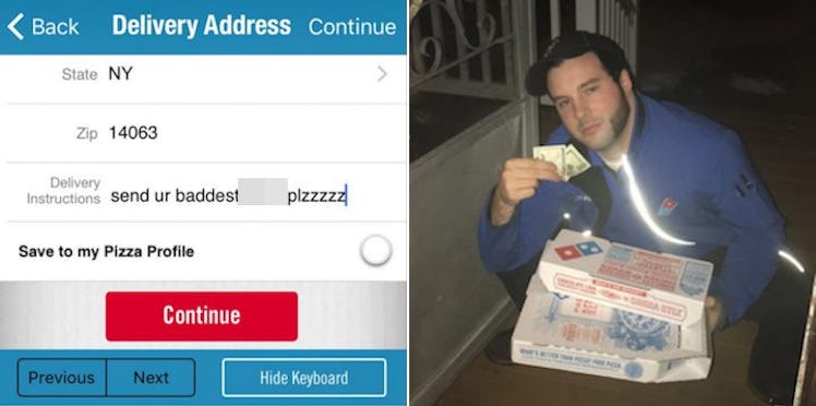 While ordering his pies on Sunday, he wrote a request in the "Delivery Instructions" box that could have very well gotten him onto Domino's shit-list.