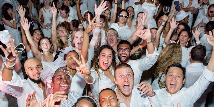 Yep. Guests are told to show up wearing white and only white, and there's an interesting reason behind the color choice. When the first "dinner" took place nearly 30 years ago in Paris, François Pasquier and a handful of friends wore only white in an outdoor location so they could find each other. Since then, the tradition continued, and people of all ages, races, and genders have gotten really into it.