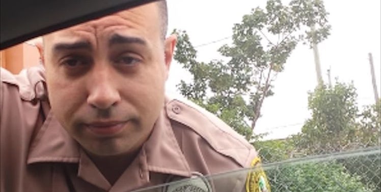 Castillo tailed the Miami-Dade police officer for several miles, until he apparently conceded and pulled onto the shoulder. When he did, he approached Castillo's car, and she caught the whole thing on film.