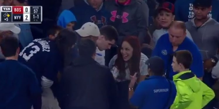 During the fifth inning of the Yankees-Red Sox game, Andrew Fox took to one knee to ask Heather Terwilliger to marry him.