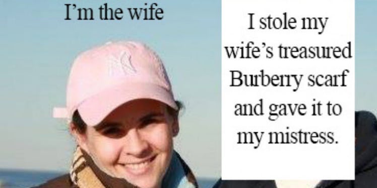 Now, imagine the pain you would feel if, on top of having a mistress, this ex also gave her your prized possession: a Burberry scarf.