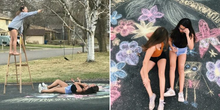 The two 14-year-old friends spent their Saturday drawing on their driveway and then set up a ladder. Naturally, they went to their big sister for this clutch moment.
