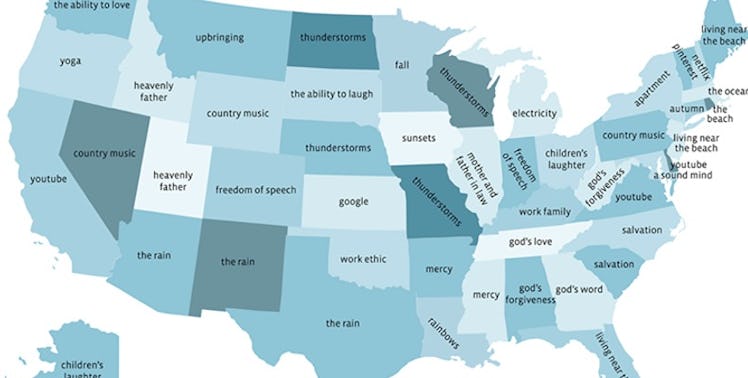 Over the last few months, Facebook has been tracking all that good will to compile a list of the things users are most thankful for. Then, Facebook took it a step further and broke down that data by gender and by state.