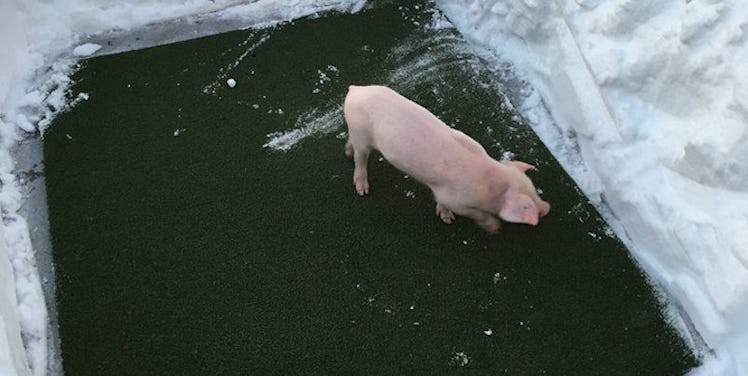 Perry Smith and his son, also named Perry, spotted the stranded pig, which I will call Lil' Bacon, while driving after a day of skiing. Smith claimed when he spotted Lil' Bacon, the piglet was shivering and struggling to make its way through the banks of snow that piled up during the blizzard this weekend.