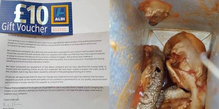Plus, the store also offered to conduct an analysis of the unidentified object found in the tomato juice.