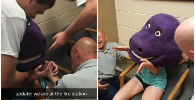 Firefighters Rescue Teen After She Gets Her Head Trapped In A Barney Costume