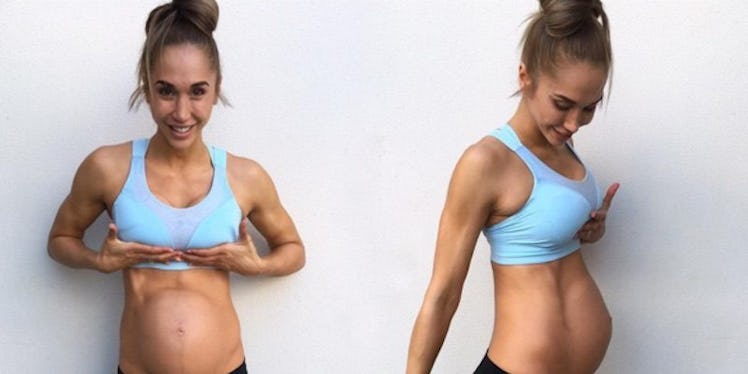 Honestly, her body is insane. How can someone have a baby bump and still have abs???