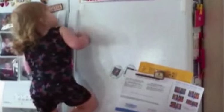 Little Girl Climbing Up The Fridge To Get Her Snack Is Literally All Of Us