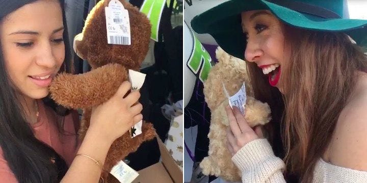 Heidi filmed their reactions upon opening the gifts and squeezing the teddy bears, and they both become overwhelmed with emotion.