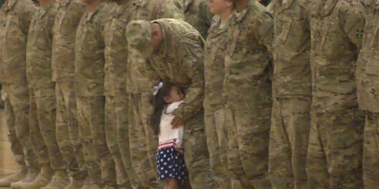 Ceremonies are for the damn birds, according to one little girl who couldn't wait to hug her dad after eight long months apart.