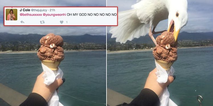 Who knew seagulls were so obsessed with ice cream?! Sharing is caring, guys! C'mon!