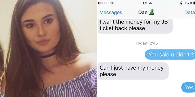 Harriet set up a PayPal-like deposit to Dan's account that'll only give him a penny a day until the price of the ticket is paid back. According to BroBible, Harriet estimated that it would take about 17 years to pay the amount back in full (which means the ticket was around £62, or $75, for those counting at home).