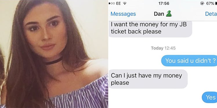 The genius plot comes from overseas, where a British Twitter user by the name of Harriet put her boyfriend on blast after he asked for his money back after the couple bought tickets to a concert.