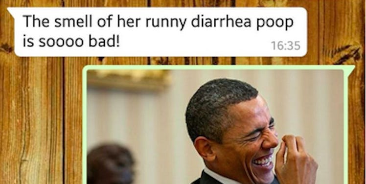 It was so nasty, she desperately texted her boyfriend, asking for his advice on what to do in the dreadful situation. At first, all he could do was respond with pictures of Obama laughing.