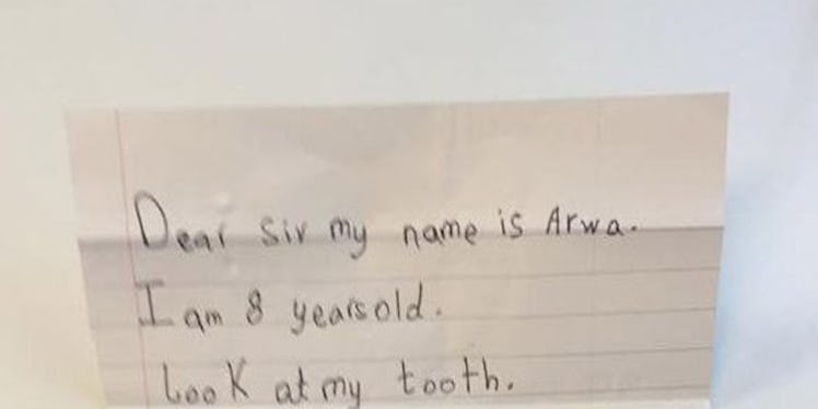 The note, which even includes a little envelope containing Arwa's lost tooth, reads,