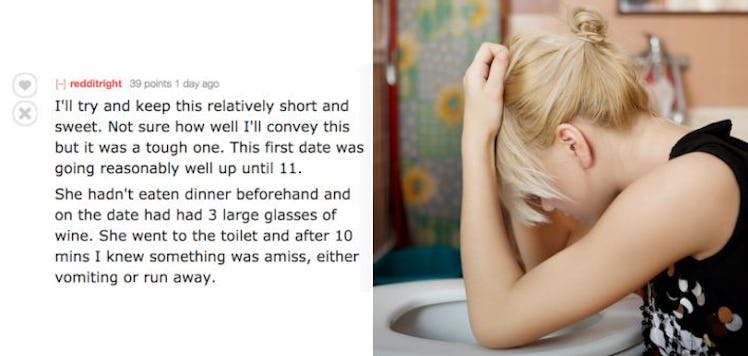 Before he knew it, "redditright" was spending a full hour alone at the table while his date said a prayer to the porcelain gods in the bathroom.