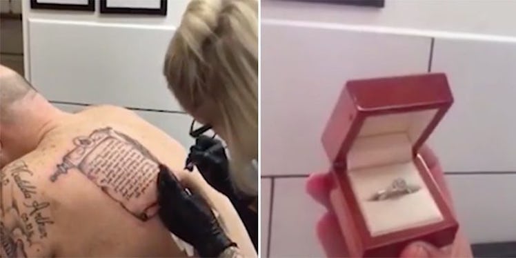 Super Committed Guy Gets His Marriage Proposal Tattooed On His Back