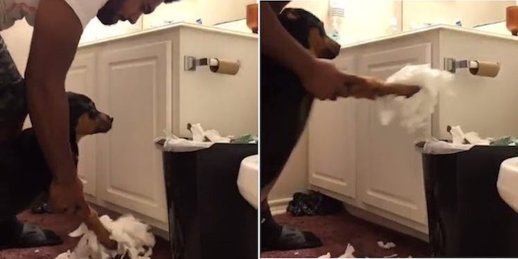 If you've ever had a puppy, you know just how mischievous they can be. Whether they're using your new shoes as a chew toy or "going" anywhere other than the backyard, puppies are always causing some sort of mischief. One new puppy dad knows this struggle all too well and made his puppy clean her own mess.