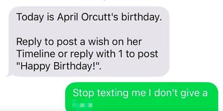 (As one does when they're told to stop texting someone because they don't give a fuck, especially on one's birthday.)
