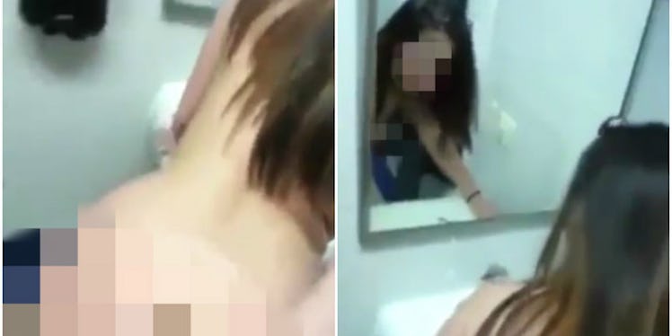 The lady is bent over a toilet sink, and the guy -- obviously a multitasking master -- films himself from various angles and quitting with a bang, quite literally.