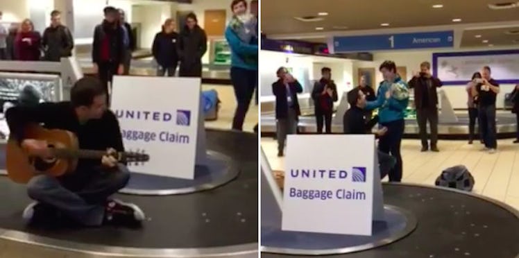 Guy Rides Baggage Carousel At The Airport To Propose To His Girlfriend