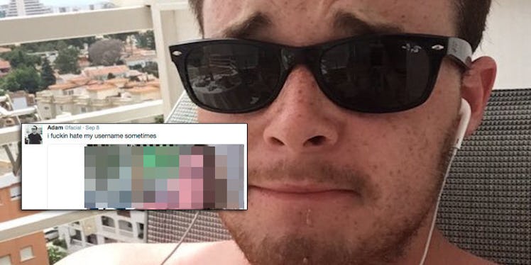 When Adam chose his username on Twitter, he probably didn't realize how much porn he would accidentally watch. Maybe he was prepared for a few beauty salons to tag "@facial" in their skincare posts, but I doubt he was ready to be watching the other far more NSFW facial.