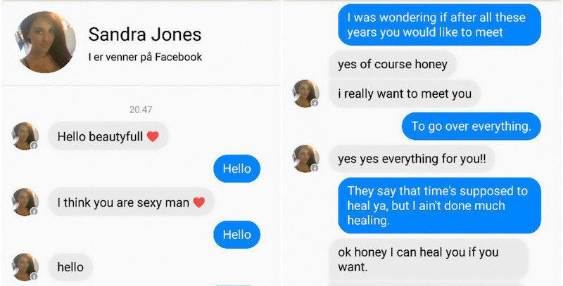 He was minding his own business when he got a message from a "Sandra Jones" on Facebook Messenger: