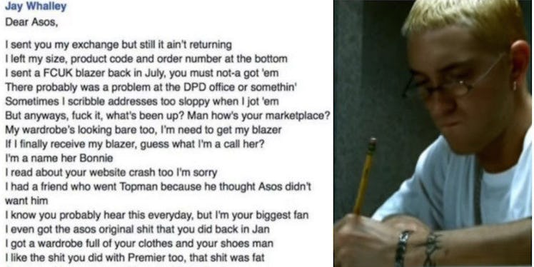 Jay Whalley from the UK trolled ASOS by spitting some ill-mannered lyrics at the store on Facebook.