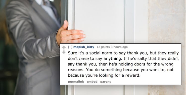 Meanwhile, this "nice" guy is super pissed about the effort he exerted to hold not one, but TWO doors open for two different girls, for which he did not receive a "thank you."