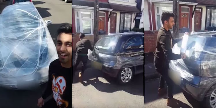 These Guys Pranked Their Friend By Covering His Entire Car In Plastic Wrap