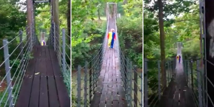 Then, the brave souls walk toward the bridge and find exactly what they suspected: a clown.