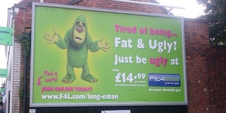 Fit4Less, a UK gym, totally crossed the line with an ad telling people that instead of being fat and ugly, they could be solely ugly if they joined the gym.