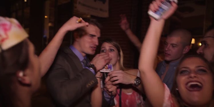 This would explain what's happening in the chaotic scene above that appears to show this group of partiers before they ripped this reporter apart limb-from-limb.