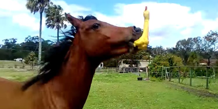 Horse Makes Rubber Chickens Funny Again By Playing One Like An Instrument