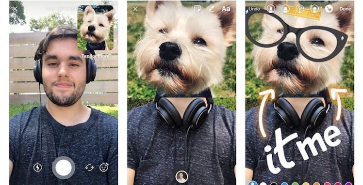 I know you might be thinking, "Doesn't IG do this already?" Well, not quite. Instagram DMs allow you to send photos and videos via Instagram Direct, but this is the first time you can reply using a specific photo, video, or re-shared posts. To use the feature, all you have to do is hit "reply" to a DM, and a sticker will automatically show up. Then, you open the camera, take a selfie, and send it off. That's it.