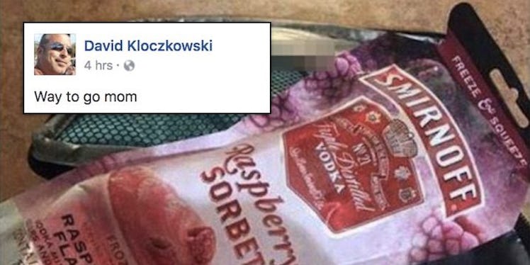 OK, this woman should probably find a better spot for her Smirnoff vodka sorbet pouches, but I also kind of think she's the most awesome mom ever.