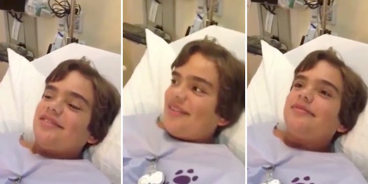 The little boy in question, Anthony, appears to be laying in a hospital bed. Every time he tries to talk or breathe, you can hear squeaking.