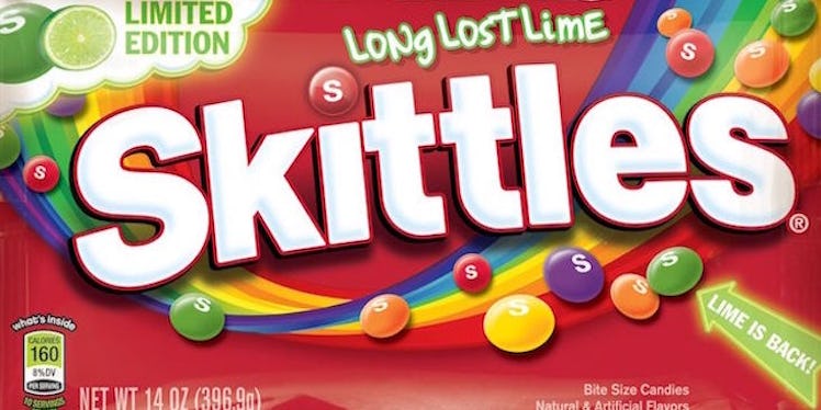 LIME-FLAVORED SKITTLES ARE BACK, BABY.