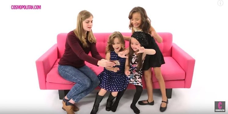 In a new video produced by Cosmopolitan.com, adult women receive flirting and texting tips from a group of savvy young girls. The hilarious video shows the girls doling out some solid advice on dating, selfie etiquette and (most importantly) when it's time to throw in the towel and order pizza.