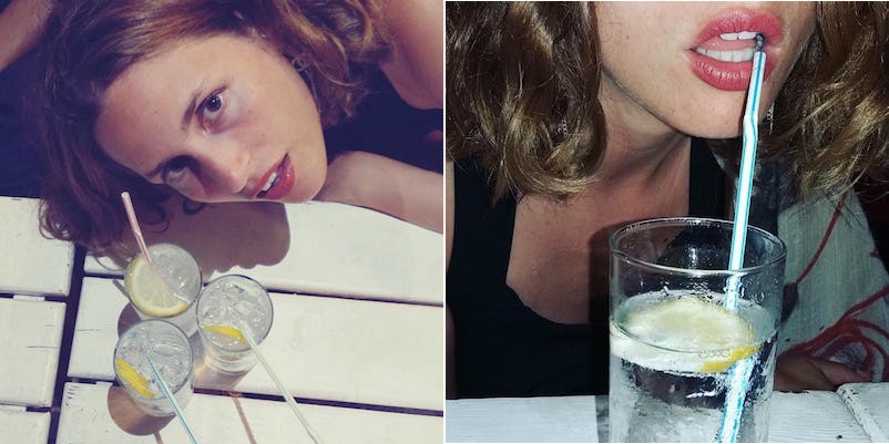 Amongst the smiles and the sunsets, the model was surrounded by at least one drink in each and every photo — and we didn't even realize it.
