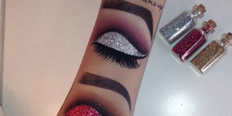 Using everyday makeup tools ranging from Anastasia Beverley Hills' dipbrow pomade to a NYX glitter eye primer, she shows in detail how to create a dramatic effect. And if you're wondering what these eye makeup designs look like on your actual eyes, don't worry, she's got you covered on that front, too.