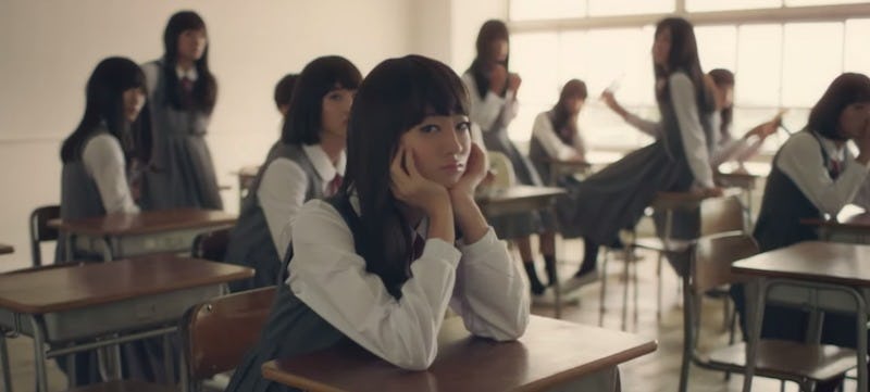 The video begins in a normal-looking classroom, where several pretty, high school girls sit at their desks.