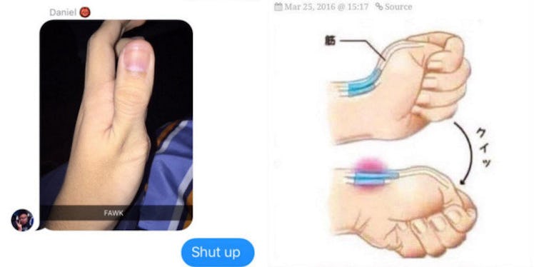 The "how to break your thumb" diagram is currently doing the rounds on Twitter and Instagram.
